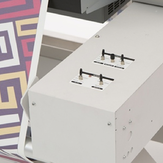 Der Drucker wird mit einem Standfuß mit integrierten Rollenhaltern geliefert. Verschiedene motorisierte Auf-/Abwickelsysteme für die Rolle-zu-Rolle-Fertigung sind lieferbar.